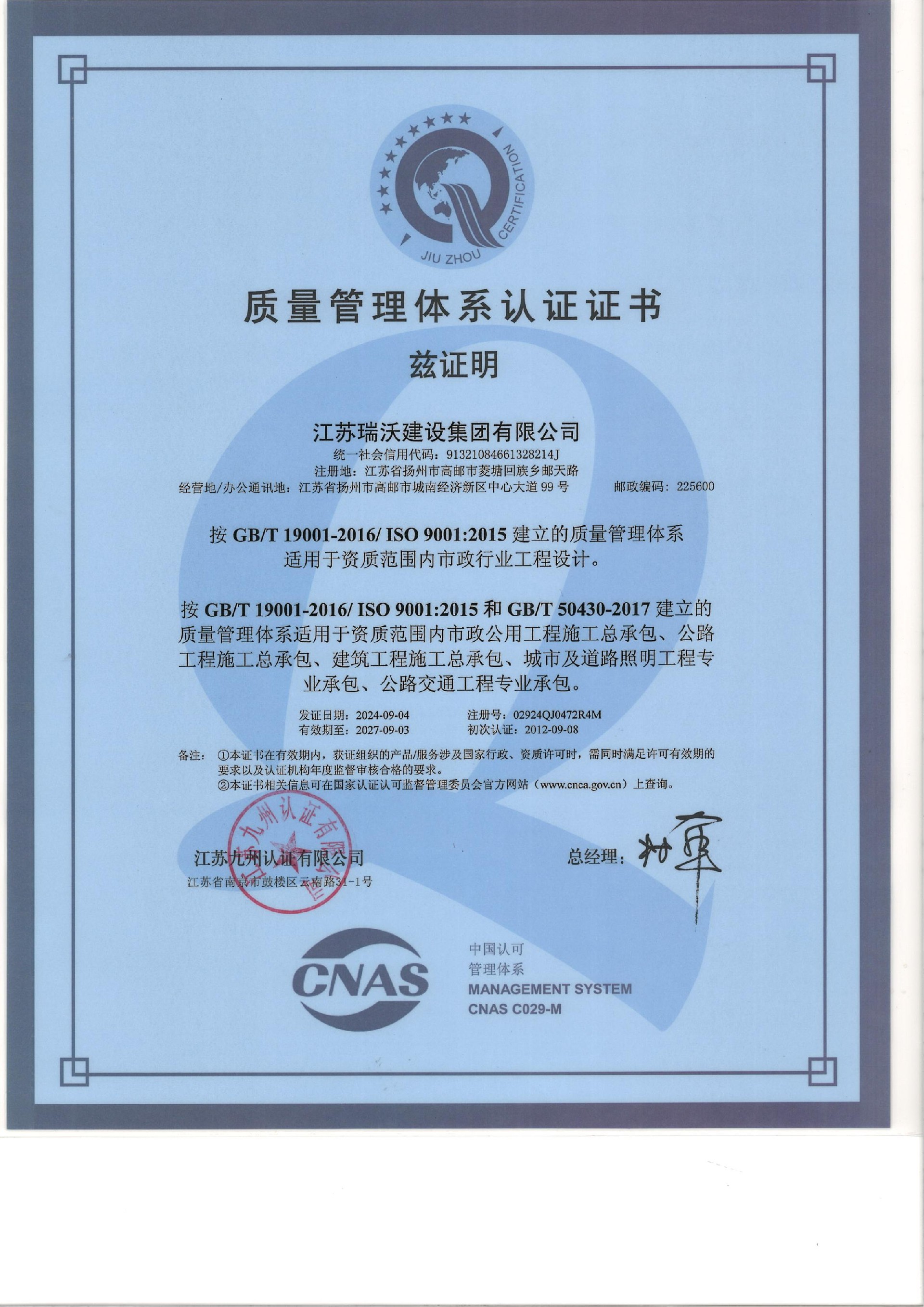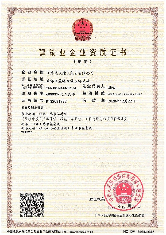 江蘇瑞沃建設(shè)集團(tuán)有限公司成立于2007年,是一家以市政、交通工程建設(shè)為主導(dǎo),集房屋建筑、交通安全設(shè)施、城市道路照明工程、電力工程、隧道工程、航道工程及投融資為一體的綜合性企業(yè)。企業(yè)注冊(cè)資本60000萬(wàn)元,現(xiàn)有各類(lèi)技術(shù)人員580人,其中中、高級(jí)以上人員498人,注冊(cè)類(lèi)人員268人,一、二級(jí)建造師166人。公司榮獲“江蘇省建筑業(yè)優(yōu)秀企業(yè)”、“江蘇省五一勞動(dòng)獎(jiǎng)狀”,連續(xù)多年被評(píng)為“揚(yáng)州市先進(jìn)企業(yè)”、“江蘇省建筑業(yè)百?gòu)?qiáng)企業(yè)”,連續(xù)八年蟬聯(lián)百?gòu)?qiáng)企業(yè)基礎(chǔ)設(shè)施類(lèi)第一名。
